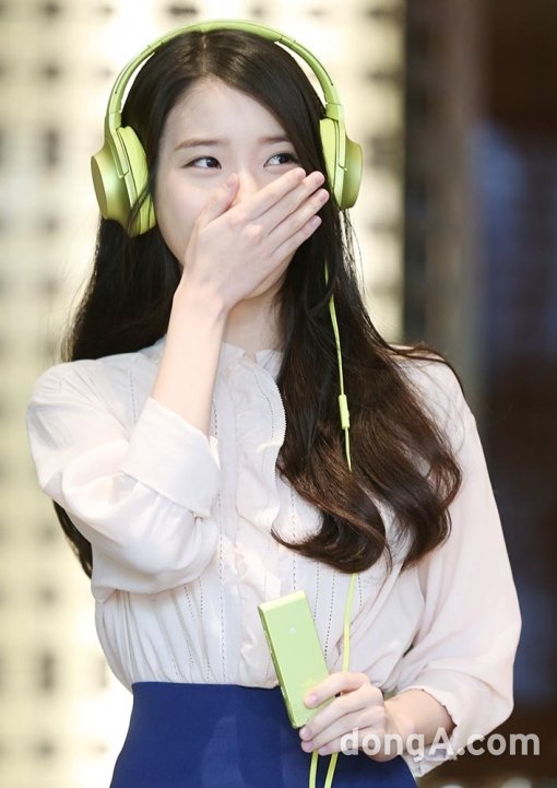 가수 아이유가 5일 오전 서울 중구 웨스틴조선호텔에서 열린 소니코리아 HRA 헤드폰 이어폰 'h.ear' 시리즈 출시 행사에 참석하고 있다.