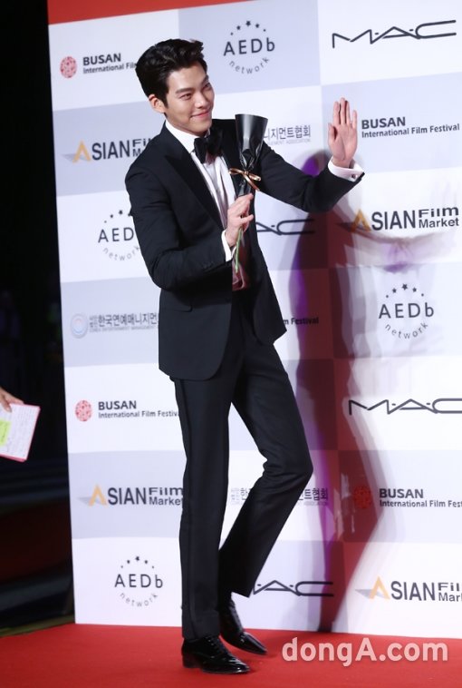 배우 김우빈이 5일 오후 부산 해운대 영화의 거리에서 열린 제20회 부산국제영화제 스타로드 행사에 참석해 포즈를 취하고 있다.