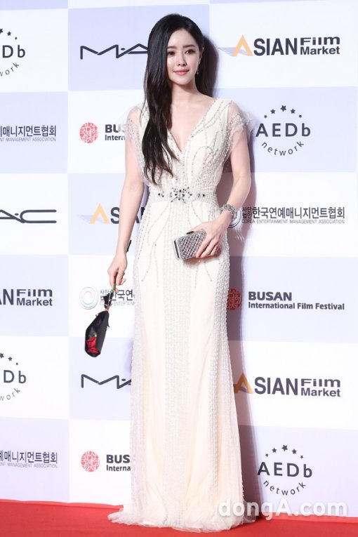배우 홍수아가 5일 오후 부산 해운대 영화의 거리에서 열린 제20회 부산국제영화제 스타로드 행사에 참석해 포즈를 취하고 있다.
