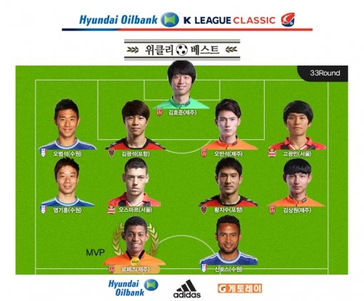 한편, K리그 클래식 33라운드 베스트 팀은 제주 유나이티드였으며 위클리 매치로는 4일 제주-전북 전이 꼽혔다.