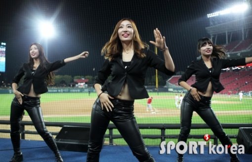 6일 오후 광주-기아챔피언스필드에서 열린 `2015 타이어뱅크 KBO 리그 프로야구` KIA 타이거즈와 LG 트윈스의 경기에서 KIA 치어리더가 공연을 펼치고 있다.