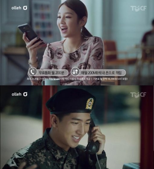 특히 올레 나라사랑 요금 편에서는 그룹 B1A4(비원에이포)의 멤버 바로와 귀여운 커플 연기를 선보인다. 광고 속 박보람은 군대에 간 남자친구 바로의 전화를 모르는 번호로 착각, 거절해버리는 ‘고무신’ 여자친구 역할을 맡았다. 올레 나라사랑요금으로 마침내 통화에 성공한 바로는 박보람에게 감격스러운 목소리로 ‘보람아’를 외치며 보는 이들의 폭소를 자아낸다.