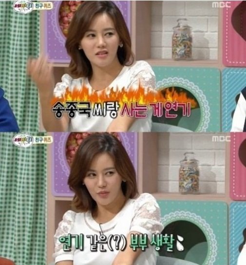 박잎선은 지난해 12월 방송된 MBC ‘세바퀴-친구찾기’에 출연했다. 이날 MC 신동엽이 박잎선에게 “예전에 연기 하지 않았느냐”고 묻자 박잎선은 “지금도 그렇다. 송종국 씨와 사는 게 연기다”면서 “연기 같은 부부생활”이라고 답했다.