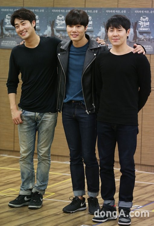 뮤지컬 배우 김영철, 문성일, 이규형(왼쪽부터)이 7일 오후 서울 성북구 한빛연습실에서 열린 뮤지컬' 위대한 캣츠비’ 연습실 공개에서 포토타임을 하고 있다.