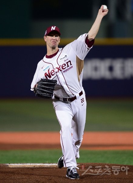넥센 선발 벤헤켄, 팔을 쭉 뻗고