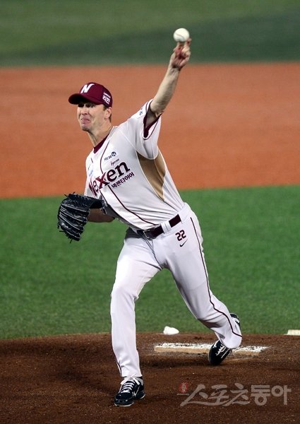 7일 서울 목동야구장에서 '2015 타이어뱅크 KBO 리그' 와일드카드 결정 1차전 넥센히어로즈와 SK와이번스 경기가 열렸다. 선발 투수로 등판한 넥센 밴헤켄이 역투하고 있다.
