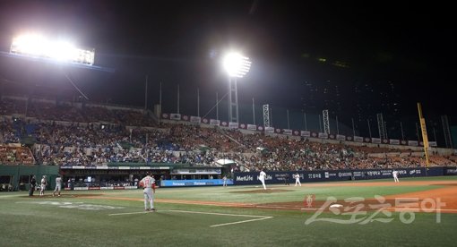 7일 서울 목동야구장에서 ‘2015 타이어뱅크 KBO리그 포스트시즌’ 넥센 히어로즈와 SK 와이번스의 와일드카드 결정전 경기가 열렸다. 포스트시즌임에도 관중석이 텅 비어 있다. 목동|김민성 기자 marineboy@donga.com