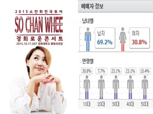 소찬휘가 공개한 이미지에는 남여 비율이 7:3으로 나와있으며 10대부터 50대까지의 나이대별 관객 점유율이 10대가 30%이상이며 20대와 50대까지는 고른 분포를 보이고 있다. 현재 VIP 잔여석 일부를 제외하면 이미 매진 상태다.