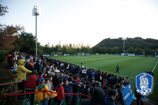 파주 NFC는 평소 일반인들에게 입장이 허용되지 않는 장소지만 이번 행사를 위해 모처럼 문을 활짝 열었다. 비가 내리고 쌀쌀한 바람이 부는 궂은 날씨도 축구팬들의 열정을 막지 못했다. 행사 시작(오후5시반) 3∼4시간 전부터 NFC를 찾은 팬들이 100명을 훌쩍 넘었다.