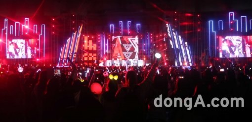 그룹 엑소가 11일 오후 부산아시아드주경기장에서 열린 2015 아시아 송 페스티벌에서 화려한 공연을 선보이고 있다.