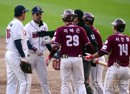 두산 김태형 감독은 “(염 감독이 두산 쪽에서 자극한다는 지적에 대해) 아무래도 중요한 경기에서 그런 일이 벌어지면 상대는 정규시즌과 다르게 예민하게 받아들일 수 있다고 생각한다. 원래라면 넘어갈 수 있는 상황도 선수들이 흥분할 수 있기 때문에 앞으로 그런 일이 벌어지지 않도록 주의를 시키겠다”고 전했다.