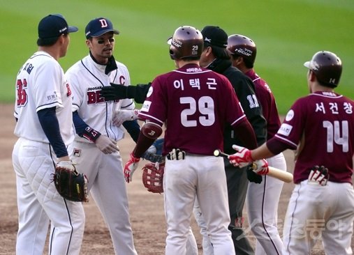 반면 두산 김태형 감독은 “아무래도 중요한 경기에서 그런 일이 벌어지면 상대는 정규시즌과 다르게 예민하게 받아들일 수 있다고 생각한다. 원래라면 넘어갈 수 있는 상황도 선수들이 흥분할 수 있기 때문에 앞으로 그런 일이 벌어지지 않도록 주의를 시키겠다”고 말했다.