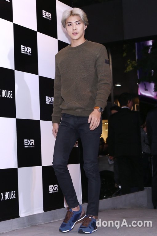 엑소의 멤버 세훈이 12일 오후 서울시 강남구 가로수길에서 열린 ‘EXR 가로수길 플래그십 스토어 오픈행사’에 참석해 포토타임을 하고 있다.