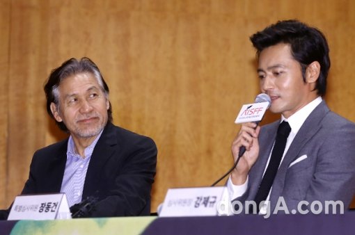 배우 안성기(왼쪽), 장동건이 13일 오전 서울시 종로구 금호아트홀에서 열린 '제13회 아시아나국제단편영화제 기자회견'에 참석해 질의응답을 하고 있다.