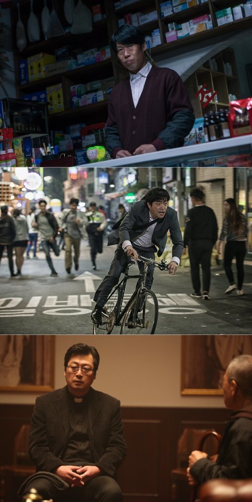 또한, 스크린을 압도하는 카리스마로 관객들에게 신뢰감을 주는 배우 김윤석은 위험에 직면한 소녀를 구하기 위해 미스터리한 사건에 맞서는 두 사제의 이야기를 그린 ‘검은 사제들’의 ‘김신부’로 컴백한다. ‘김신부’의 단호한 면모와 소녀를 구하겠다는 굳은 신념은 김윤석의 묵직한 존재감, 폭발적인 연기력과 시너지 효과를 일으키며 관객들의 몰입을 도울 것으로 알려졌다.