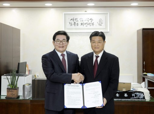 협약식에는 김기호 악스코리아 겸 예스24 대표이사와 김기동 광진구청장이 참석했다.