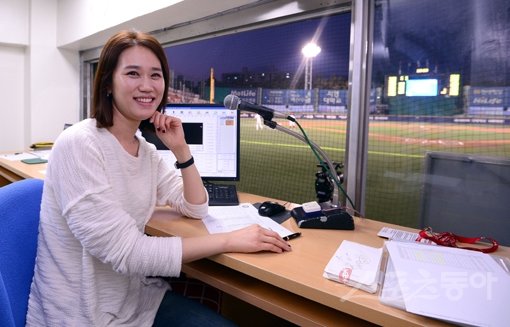 13일 서울 목동야구장에서 ‘2015 타이어뱅크 KBO 리그’ 준플레이오프 3차전 넥센히어로즈와 두산베어스 경기가 열렸다. 김은실 장내 아나운서 겸 홍보팀 대리. 목동|김종원기자 won@donga.com