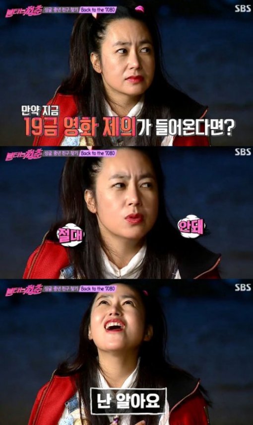 ‘불타는 청춘’에서 김선경이 청불 영화 제안이 들어와도 안 할 것 같다고 말했다.