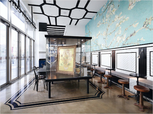 초정밀 리프로덕션 작품으로 반 고흐의 명화를 만나볼 수 있다. 고흐의 작품을 카페 인테리어로 재현해 품격있는 볼거리를 제공하고 있다.
