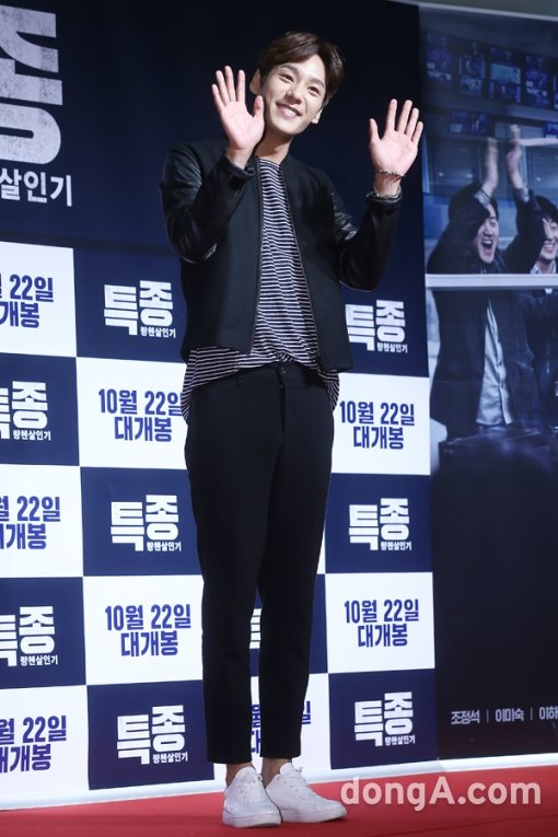 배우 곽시양이 14일 오후 서울시 송파구 롯데시네마 월드타워점에서 열린 영호 '특종: 량첸살인기' 레드카펫 행사에 참석해 포토타임을 하고 있다.