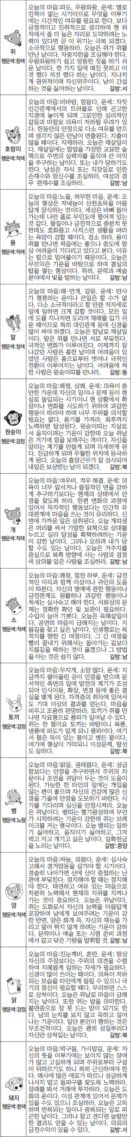 금일 주식, 부동산 매도 행운의 띠: 호랑이,말,개