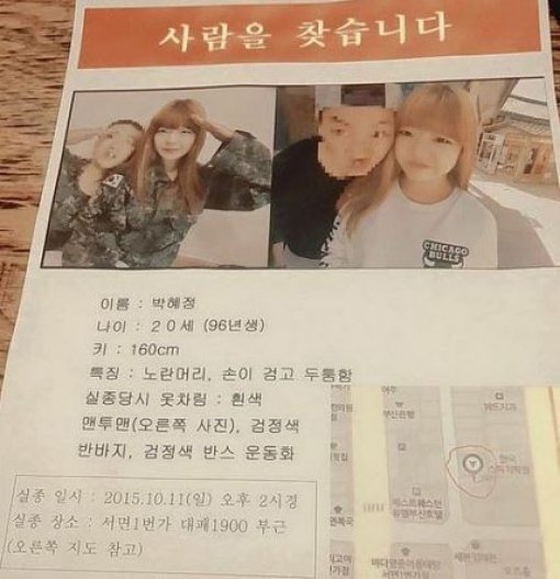 앞서 박양은 지난 11일 오후 2시 경 부산 부산진구 서면1번가의 한 식당에서 친구 2명과 식사를 하다가 전날 휴가를 마치고 군대에 복귀한 남자친구와 통화하러 잠깐 식당을 나간 사이 사라져 가족들이 실종 신고를 한 바 있다.