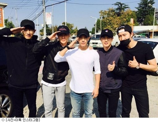 슈퍼주니어 리더 이특이 15일(오늘) 입대한 멤버 동해의 사진을 공개했다.
