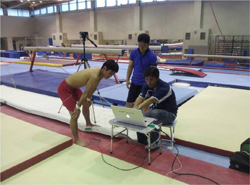 1964도쿄올림픽을 계기로 스포츠과학에 깊은 관심을 갖게 된 우리 체육계는 준정부기관인 한국스포츠개발원(KISS)을 중심으로 훈련 현장의 과학화와 효율적이고 체계적인 지원을 통해 선수들이 최상의 경기력을 발휘할 수 있도록 돕고 있다. 남자기계체조 훈련장에서 양학선(왼쪽)의 훈련 분석을 돕는 KISS 송주호 담당 연구원(오른쪽)의 모습. 사진제공|KISS