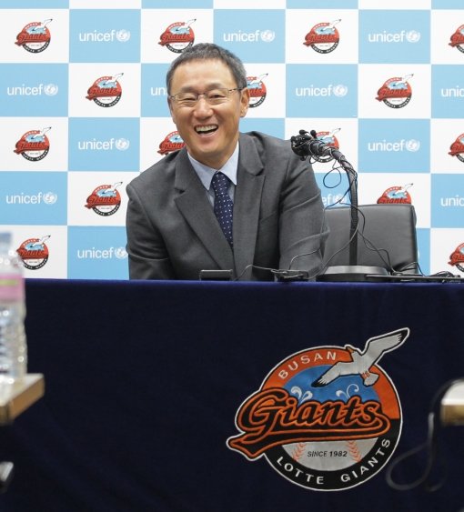 16일 사직구장에선 조 감독의 취임식이 열렸다. 선수단 전원이 참석한 가운데 이창원 사장이 등번호 74번이 적힌 유니폼을 직접 입혀주며 조 감독 체제 출발을 알렸다. 이윤원 단장과 주장 최준석의 꽃다발을 받은 조 감독은 “선수단에게 몇 가지만 짧게 전달하겠다”며 취임사를 시작했다.