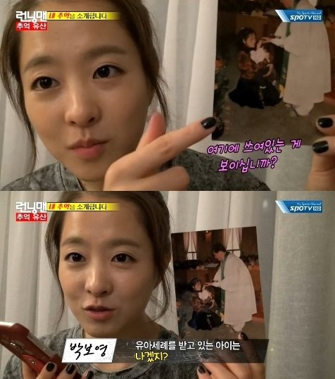 박보영은 18일 방송된 SBS ‘일요일이 좋다-런닝맨’(이하 런닝맨)에서 추억의 물건을 가져오라는 제작진의 부탁을 받고 과거 사진을 공개했다.