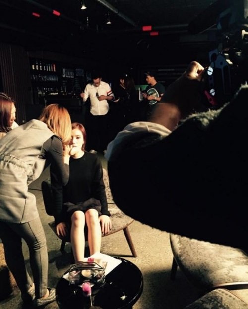 사진 속에는 촬영장으로 보이는 스튜디오에서 화장을 수정중인 거미가 담겼다.