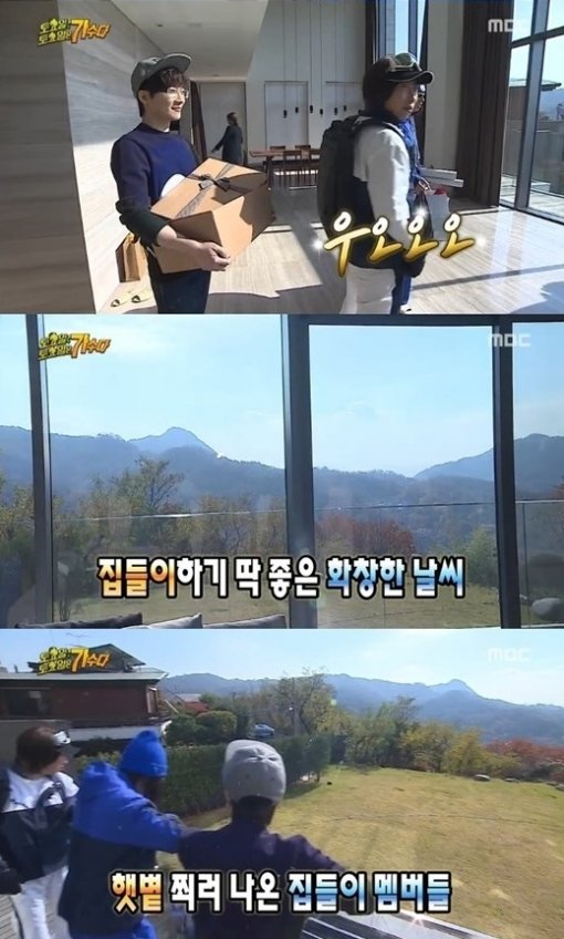 서태지 이은성 부부 집은 거실 전면이 통유리로 만들어져 탁 트인 경치를 드러냈다. 유재석과 박명수는 거실 베란다에서 잔디가 깔린 앞마당을 바라보며 부러움을 표현했다.