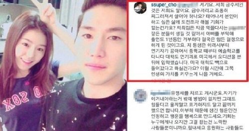 조수훈 씨는 “미국 대학도 빽으로 들어갔다고 하실거냐?”며 “이럴 시간에 그쪽 인생의 가치를 키우는 게 나을거다”라고 강력히 충고했다.