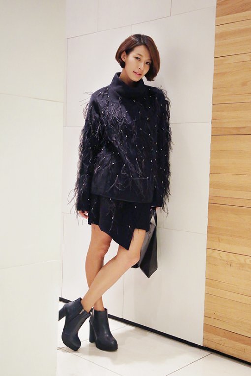 정애연은 지난 21일 자신의 SNS를 통해 “제이어퍼스트로피 서울컬렉션 가기 전에 포즈“라는 글과 함께 한 장의 사진을 게재했다.
