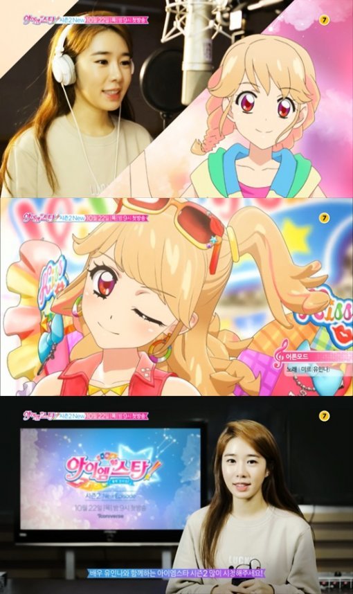 첫 방송에 앞서 공개된 예고영상(youtu.be/WlCy0AAy_uw)에서는 유인나가 직접 마이크 앞에서 더빙을 하고 있는 모습이 담겨 눈길을 끌고 있다. 유인나는 본인이 연기하는 ‘미르’와 높은 싱크로율을 자랑하며 자신만의 색깔로 목소리 연기를 펼쳤다. 특히 아이돌 스타가 되는 과정을 그린 ‘아이엠스타2’에서 유인나는 애니메이션 속 노래도 직접 부르며 수준급 노래실력도 함께 뽐내며 기대감을 높이고 있다.