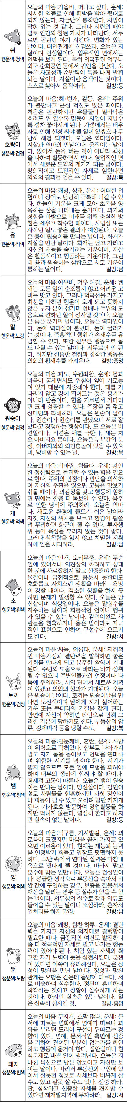 금일복권, 주식, 부동산매입 행운의 띠: 소,뱀,닭(토요일:호랑이,말,개)