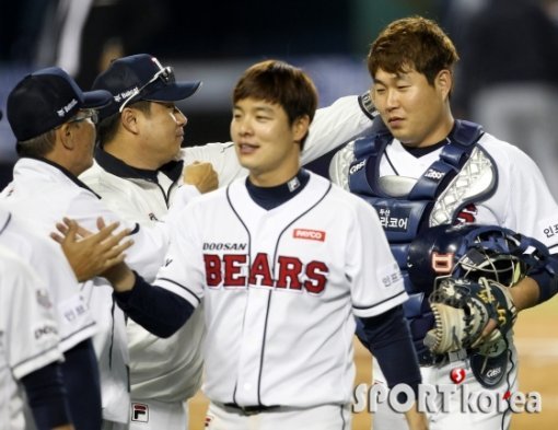 니퍼트와 해커의 호투로 0의 행진을 펼치던 균형은 6회말에 깨졌다. 민병헌의 2루타와 김현수 볼넷에 이어 부상투호 중인 양의지의 안타로 만든 무사 만루의 기회에서 홍성흔의 파울플라이로 물러나며 1사 만루가 된 상황, 타석에 들어선 오재원이 5구째를 잡아당긴 타구가 크게 바운드되며 1루수 키를 넘기며 2-0으로 앞서 나갔다, 이어 고영민의 안타로 3-0으로 6회말 마친 두산은 7회에 김현수가 1타점을 추가했다. 8회 허경민은 2타점 2루타를 치며 승부에 쐐기를 박았다.