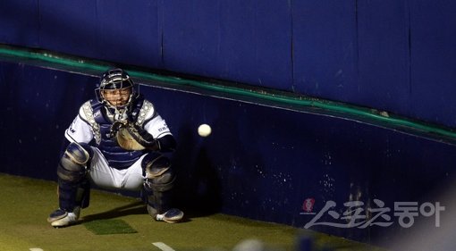 프리미어 12에 참가할 대표팀이 딱한 처지에 놓였다. 삼성 일부 투수의 해외원정도박 파문이 불거지면서 규정상 5명까지 허용된 최종 엔트리 교체 카드 중 최대 3장을 소진해야 할 수도 있기 때문이다. 포스트시즌과 대표팀 소집훈련 도중 부상자가 나오면 제약이 뒤따를 수 있다. 플레이오프 2차전에서 오른 발가락을 다친 두산 포수 양의지가 22일 잠실구장에서 NC와의 4차전을 앞두고 몸을 풀고 있다. 잠실|김종원 기자 won@donga.com