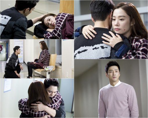23일 SBS 주말드라마 ‘애인있어요’ 측이 공개한 사진에서 이규한은 병원 복도 의자에 웅크리고 누워 잠이 들었던 김현주에게 자신의 옷을 덮어준다. 이내 한쪽 무릎을 꿇고 김현주 앞에 앉아 걱정하는 표정을 짓는다. 김현주는 이런 이규한을 꼭 끌어안았다. 특히 이를 지켜보고 있던 지진희가 충격 받은 듯해 시선을 사로잡는다.
