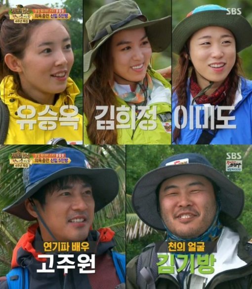 이날 ‘정글의 법칙’에는 그동안 정글에 가보고 싶다는 연예인 다섯 명이 모였다. 배우 김기방, 고주원, 김희정, 이미도, 그리고 방송인 유승옥이 그 주인공이었다.