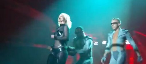 격렬한 퍼포먼스를 펼치던 브리트니는 자신의 의상 뒤쪽 지퍼가 내려가고 있음을 눈치채고 춤을 추며 자신의 손으로 올려보려 했지만 역부족이었다. 이에 뒤에서 춤을 추던 백댄서들이 달려들어 지퍼를 올리려 안간힘을 쓰지만 브리트니의 몸에 타이트하게 밀착된 올인원 슈트의 지퍼는 좀처럼 올라가지 않아 보는 이들까지 진땀을 흘리게 한다.