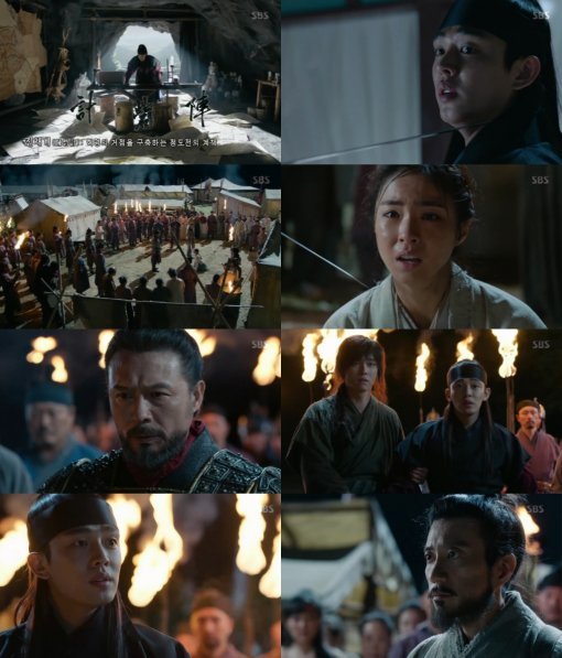 그 순간 기적처럼 정도전이 나타났다. “여기 있소”라는 커다란 외침과 함께 등장한 정도전은 조용히 쓰고 있던 갓을 벗었다. 그리고 “내가 그 사람이오”라고 힘 있고 강단 있는 목소리로 읊조렸다. 정도전이 나타나자 분이는 “아저씨”라고 외쳤고 이방원은 “신조선의 주인이 장평문의 잔트가르다”라며 경악을 금치 못했다.