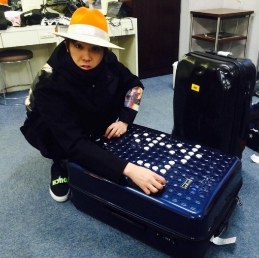 시크한 올 블랙 패션에 비비드한 오렌지 컬러 페도라를 매치해 패셔니스타 다운 면모를 보여준 그는 앞에 놓인 캐리어에 자신의 이름을 스티커로 커스튬하는 모습을 통해 많은 팬들의 관심을 끌었다.