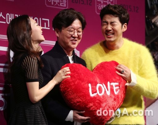 배우 힌예리, 감독 하기호, 윤계상(왼쪽부터)이 27일 오전 서울 강남구 압구정 한 멀티플렉스에서 열린 영화 ‘극적인 하룻밤’ 제작보고회에 참석해 포토타임을 하고 있다.