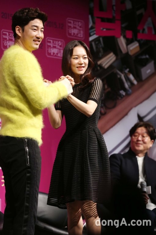 배우 윤계상(왼쪽)과 힌예리가 27일 오전 서울 강남구 압구정 한 멀티플렉스에서 열린 영화 ‘극적인 하룻밤’ 제작보고회에 참석해 포즈를 취하고 있다.