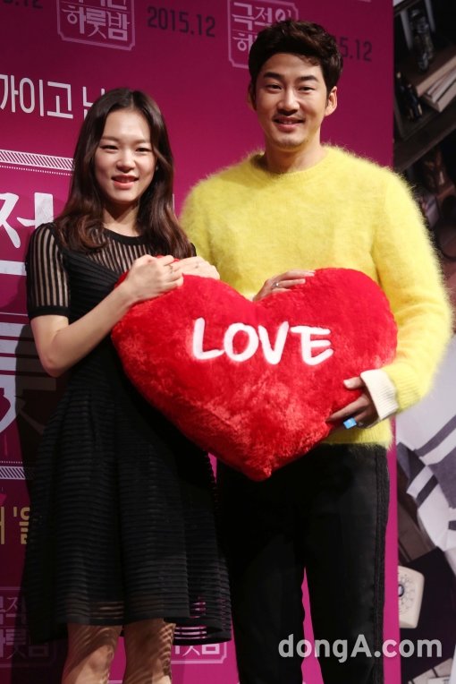 배우 힌예리(왼쪽)와 윤계상이 27일 오전 서울 강남구 압구정 한 멀티플렉스에서 열린 영화 ‘극적인 하룻밤’ 제작보고회에서 포토타임을 하고 있다.