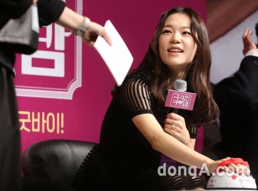 배우 힌예리가 27일 오전 서울 강남구 압구정 한 멀트플렉스에서 열린 영화 ‘극적인 하룻밤’ 제작보고회에 참석해 진실게임을 하고 있다.