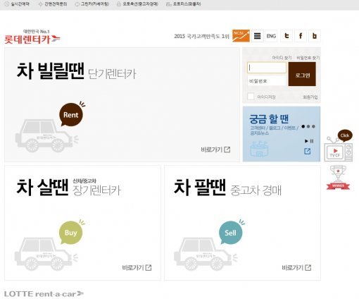 롯데렌터카 홈페이지는 단순 정보제공이나 홍보기능 대신 첫 화면에서부터 고객이 ‘빌리고 사고 파는’ 자동차 생활의 모든 서비스를 한번에 처리할 수 있도록 직관적으로 메뉴를 구성했다.