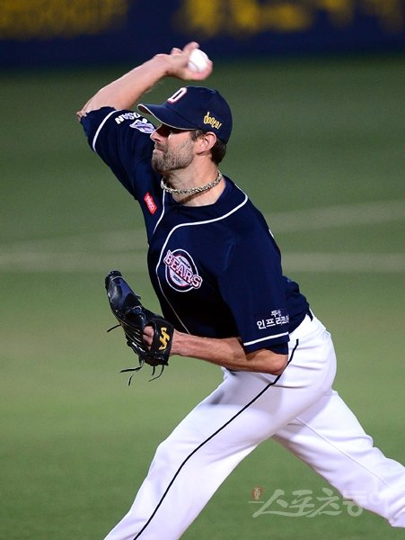 27일 대구 시민야구장에서 '2015 타이어뱅크 KBO 리그' 한국시리즈 2차전 삼성라이온스와 두산베어스 경기가 열렸다. 선발 투수로 등판한 두산 니퍼트가 역투하고 있다.