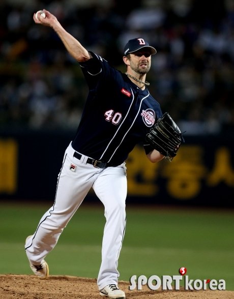 27일 오후 대구 시민야구장에서 열린 `2015 타이어뱅크 KBO 리그` 삼성 라이온즈 대 두산 베어스 한국시리즈 2차전에 선발 출전한 두산 니퍼트가 삼성 타선을 향해 역투하고 있다.